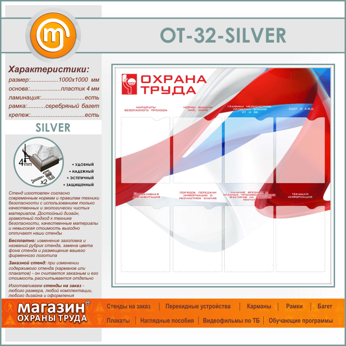 Стенд «Охрана труда» с 8 карманами (OT-32-SILVER) в Старом Осколе купить