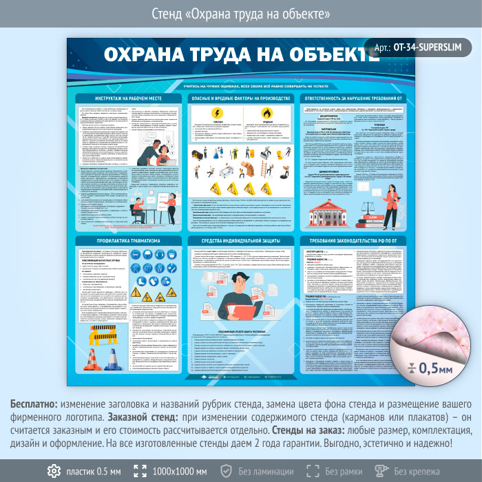 Стенд «Охрана труда на объекте» (OT-34-SUPERSLIM) в Старом Осколе купить