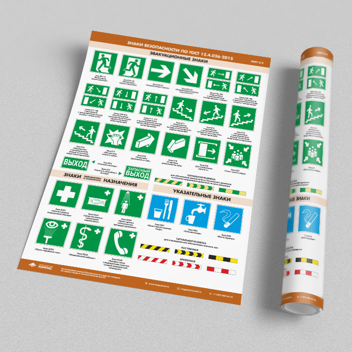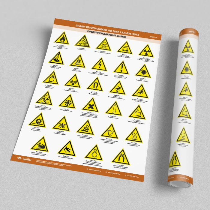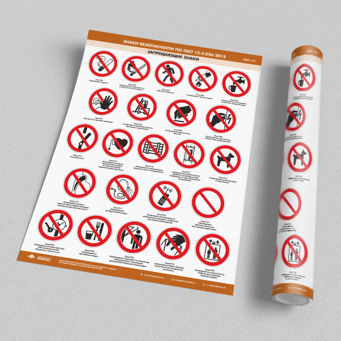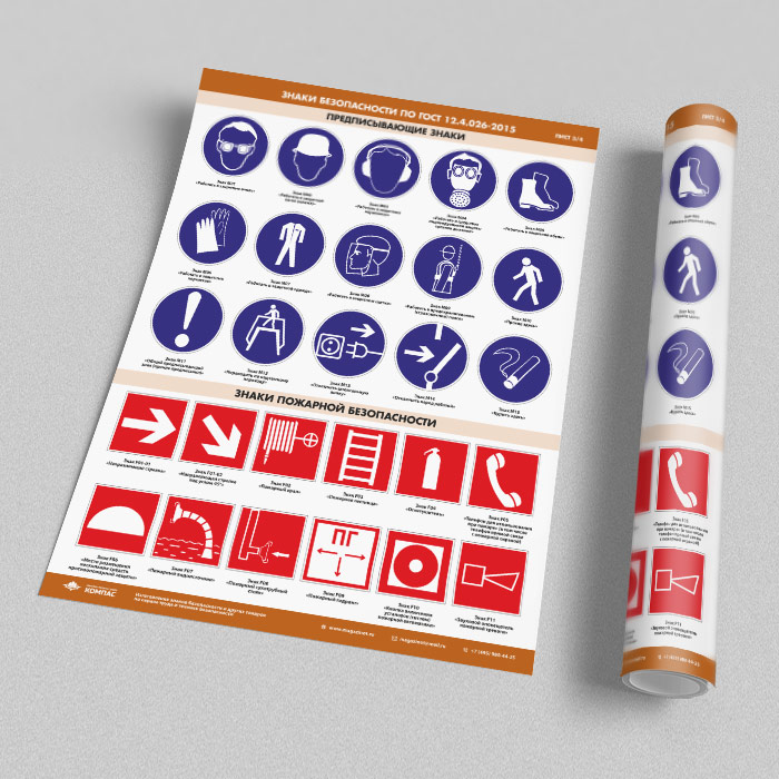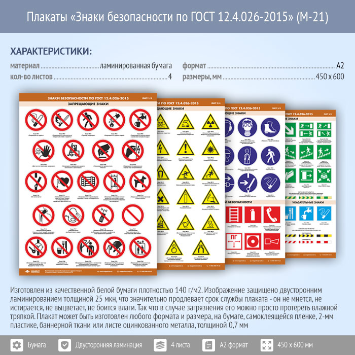 Плакаты «Знаки безопасности по ГОСТ 12.4.026-2015» (М-21, ламинированная бумага, А2, 4 листа) в Старом Осколе купить