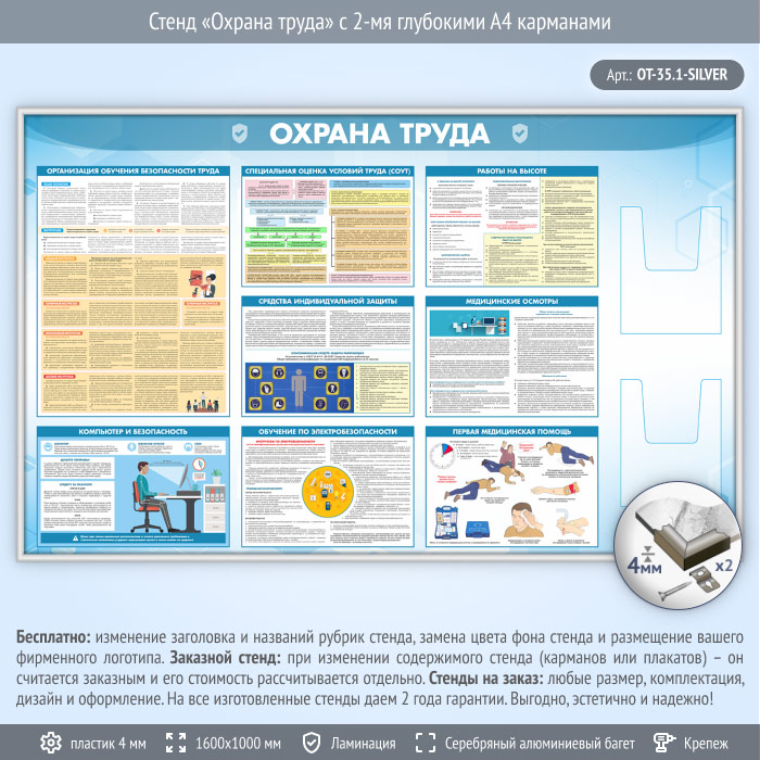 Стенд «Охрана труда» с 2-мя глубокими А4 карманами (OT-35.1-SILVER) в Старом Осколе купить