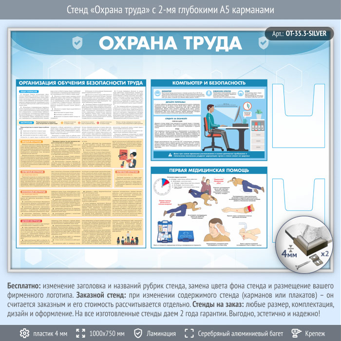 Стенд «Охрана труда» с 2-мя глубокими А5 карманами (OT-35.3-SILVER) в Старом Осколе купить