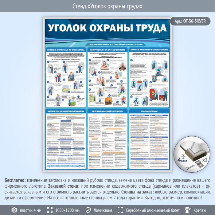 Стенд «Уголок охраны труда» (OT-36-SILVER) в Старом Осколе купить