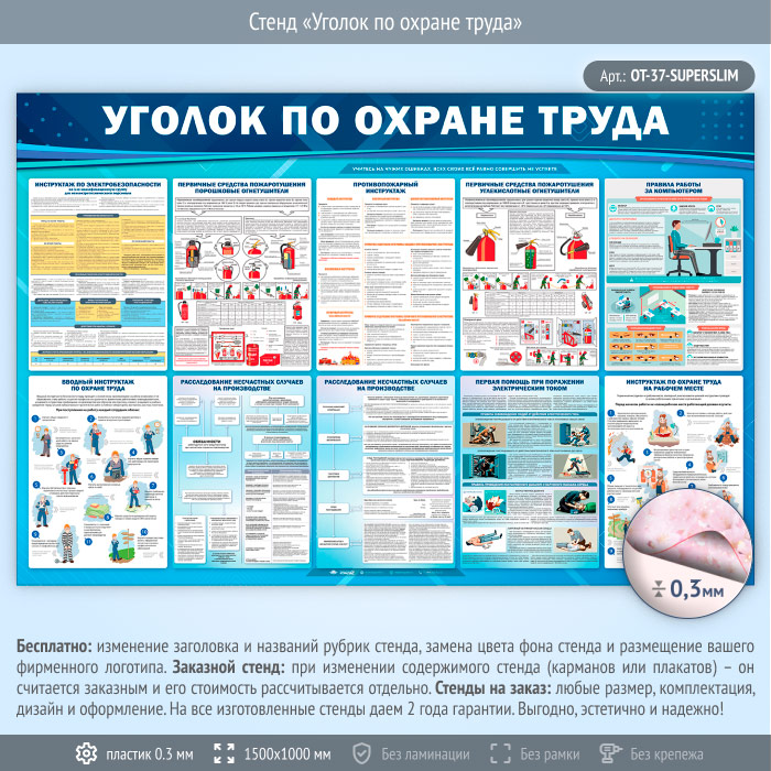 Стенд «Уголок по охране труда» (OT-37-SUPERSLIM) в Старом Осколе купить