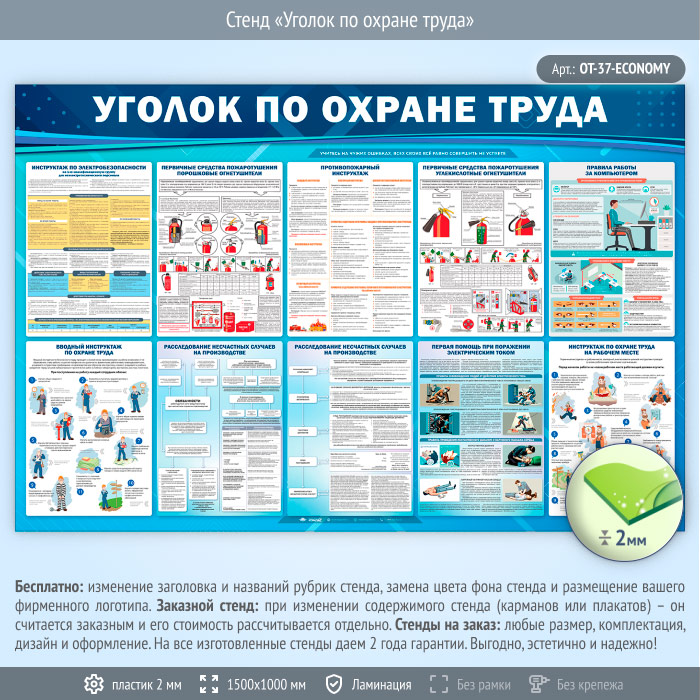 Стенд «Уголок по охране труда» (OT-37-ECONOMY) в Старом Осколе купить
