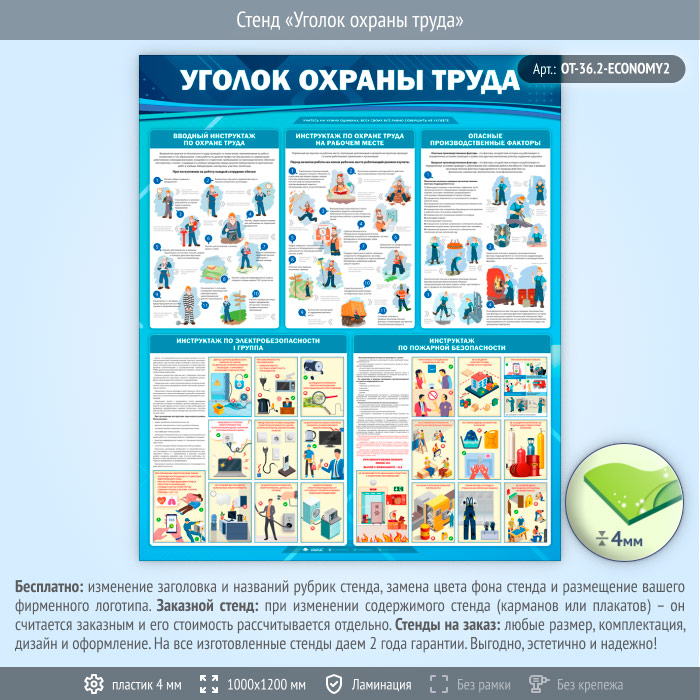 Стенд «Уголок охраны труда» (OT-36.2-ECONOMY2) в Старом Осколе купить