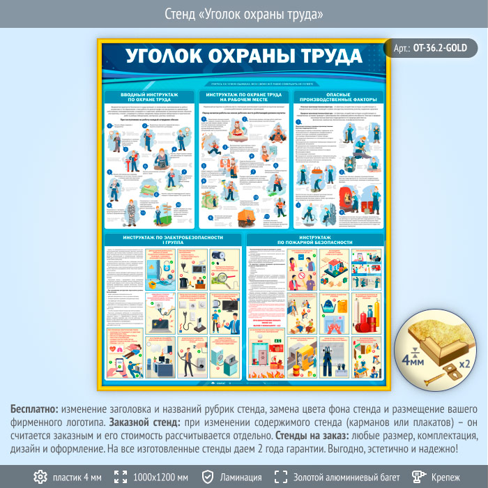 Стенд «Уголок охраны труда» (OT-36.2-GOLD) в Старом Осколе купить