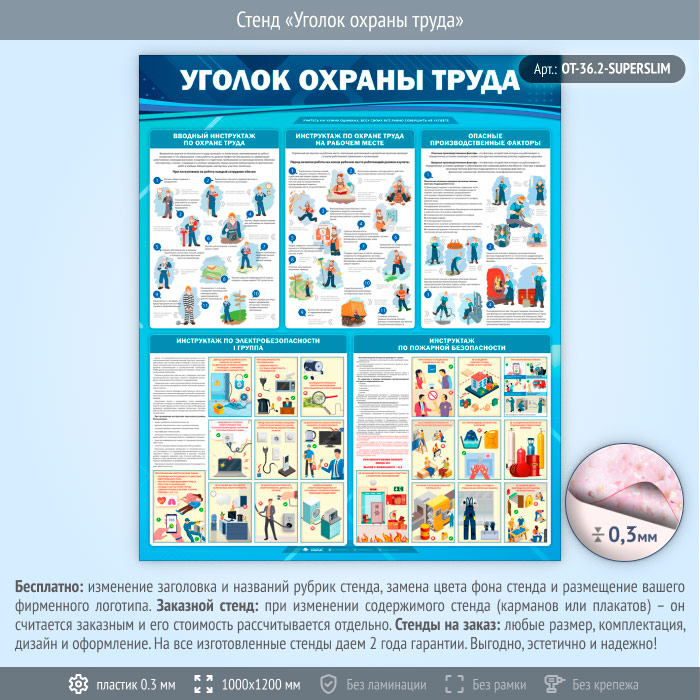 Стенд «Уголок охраны труда» (OT-36.2-SUPERSLIM) в Старом Осколе купить