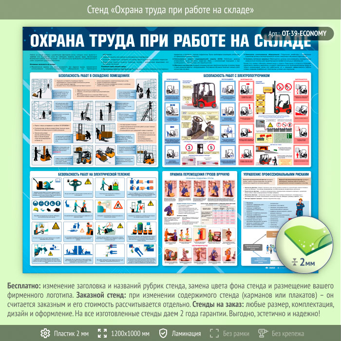 Стенд «Охрана труда при работе на складе» (OT-39-ECONOMY) в Старом Осколе купить