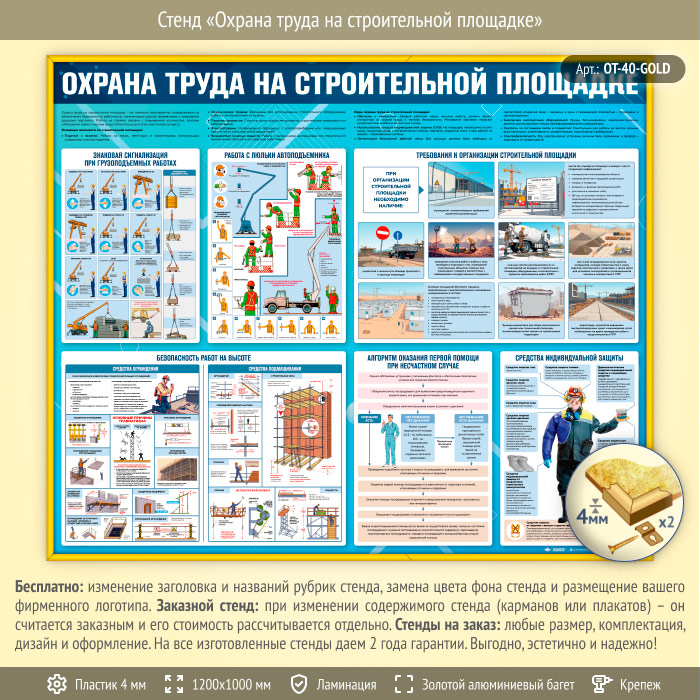 Стенд «Охрана труда на строительной площадке» (OT-40-GOLD) в Старом Осколе купить