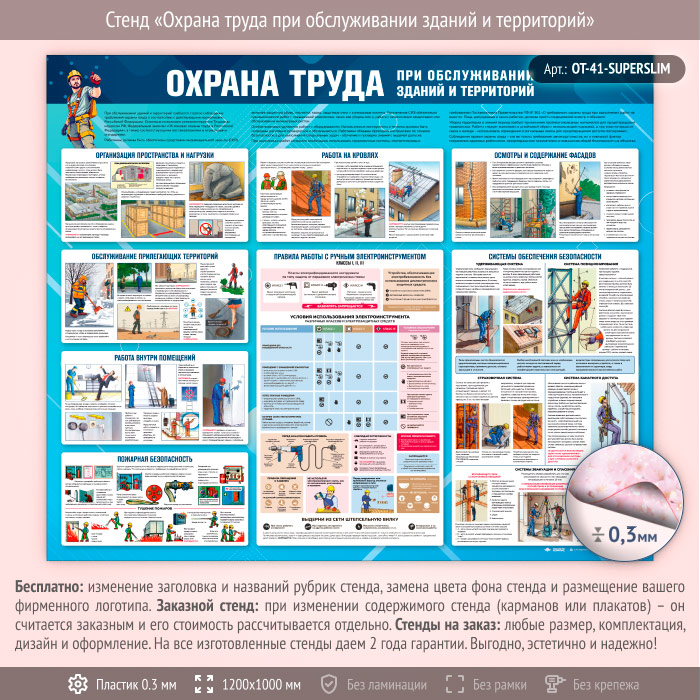 Стенд «Охрана труда при обслуживании зданий и территорий» (OT-41-SUPERSLIM) в Старом Осколе купить