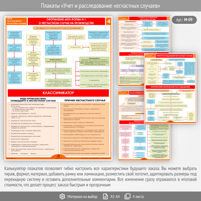 Плакаты «Учет и расследование несчастных случаев» (М-09, 4 листа) в Старом Осколе купить