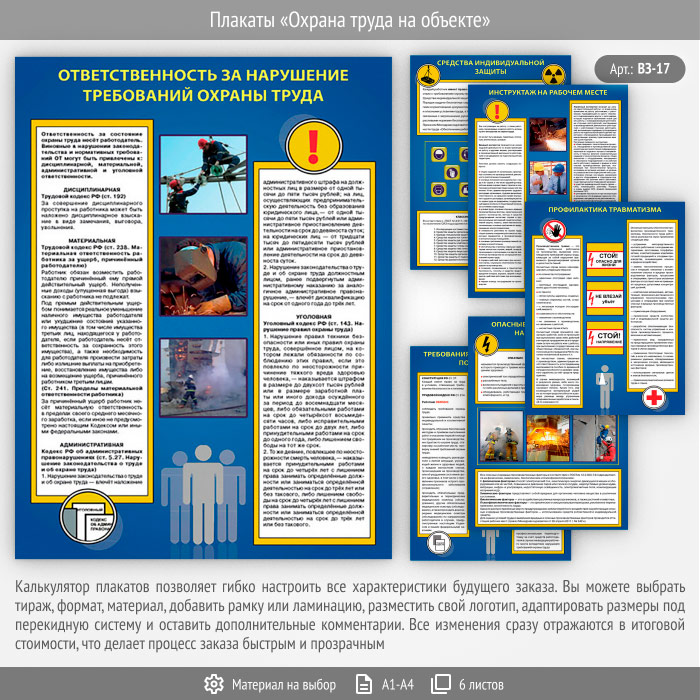 Плакаты «Охрана труда на объекте» (ВЗ-17, 6 листов) в Старом Осколе купить