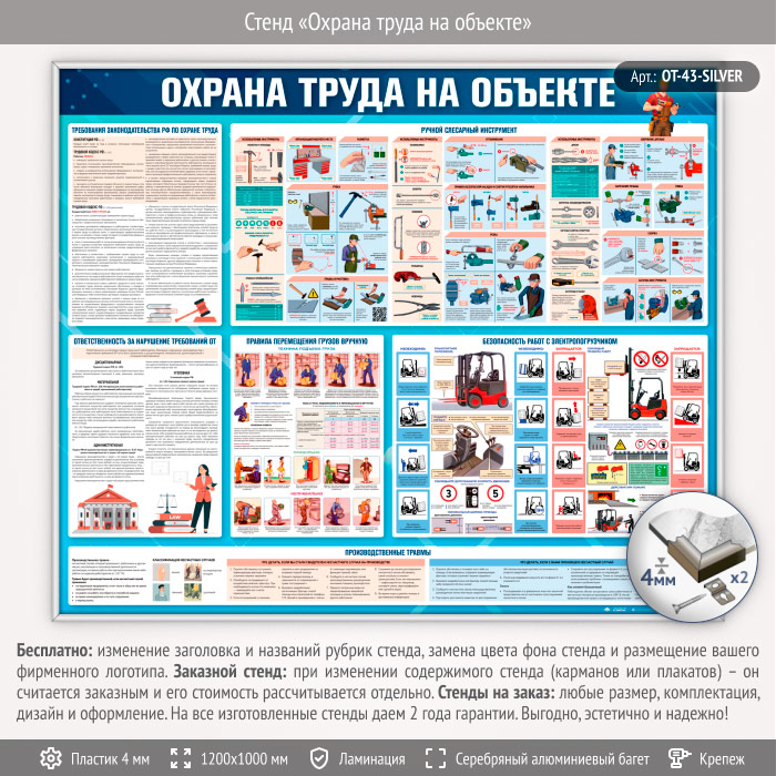 Стенд «Охрана труда на объекте» (OT-43-SILVER) в Старом Осколе купить