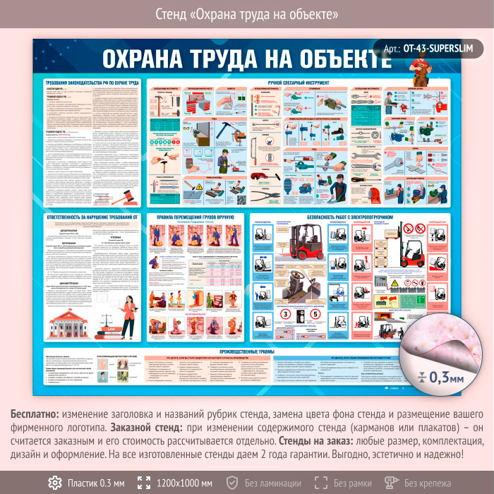 Стенд «Охрана труда на объекте» (OT-43-SUPERSLIM) в Старом Осколе купить