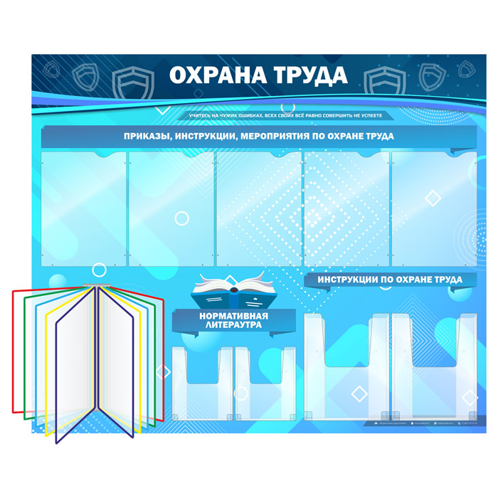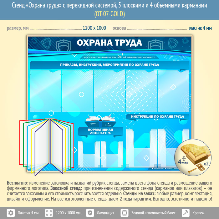 Стенд «Охрана труда» с перекидной системой, 5 плоскими и 4 объемными карманами (OT-07-GOLD) в Старом Осколе купить