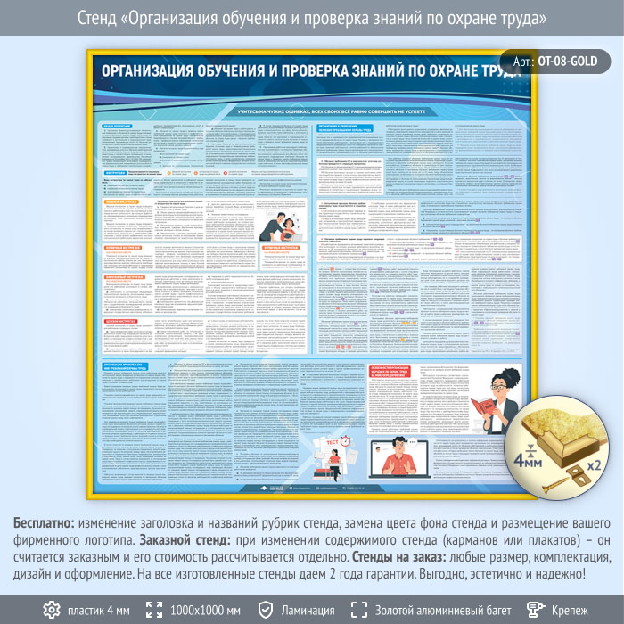 Стенд «Организация обучения и проверка знаний по охране труда» (OT-08-GOLD) в Старом Осколе купить
