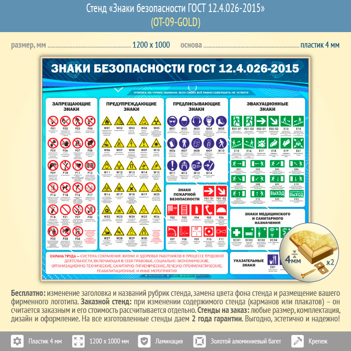 Стенд «Знаки безопасности ГОСТ 12.4.026-2015» (OT-09-GOLD) в Старом Осколе купить