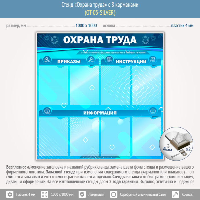 Стенд «Охрана труда» с 8 карманами (OT-05-SILVER) в Старом Осколе купить