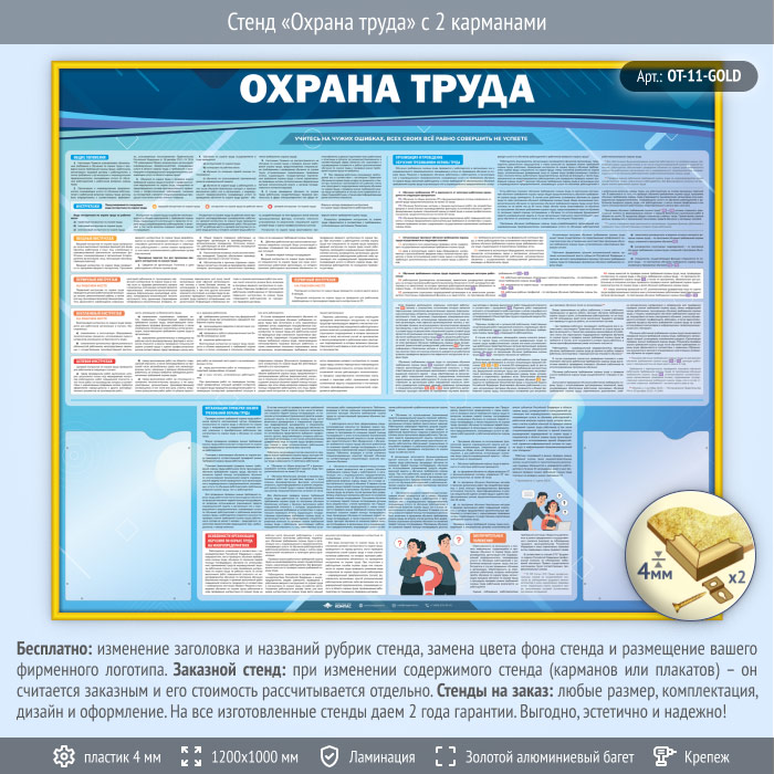 Стенд «Охрана труда» с 2 карманами (OT-11-GOLD) в Старом Осколе купить