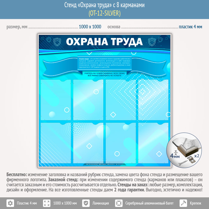 Стенд «Охрана труда» с 8 карманами (OT-12-SILVER) в Старом Осколе купить