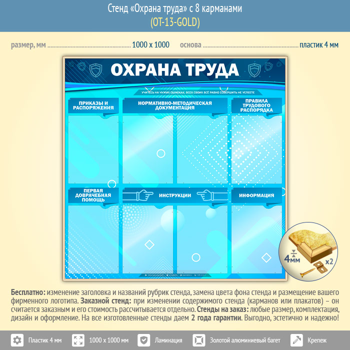 Стенд «Охрана труда» с 8 карманами (OT-13-GOLD) в Старом Осколе купить