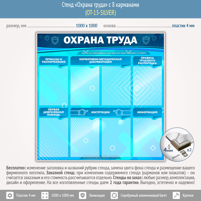 Стенд «Охрана труда» с 8 карманами (OT-13-SILVER) в Старом Осколе купить