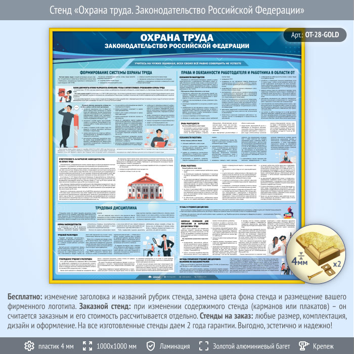Стенд «Охрана труда. Законодательство Российской Федерации» (OT-28-GOLD) в Старом Осколе купить