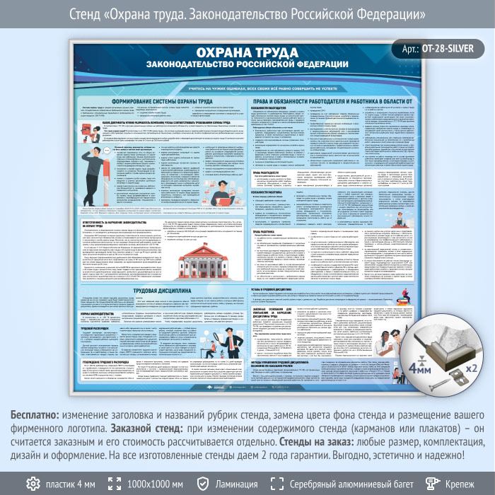 Стенд «Охрана труда. Законодательство Российской Федерации» (OT-28-SILVER) в Старом Осколе купить