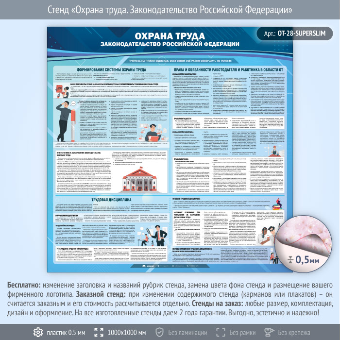 Стенд «Охрана труда. Законодательство Российской Федерации» (OT-28-SUPERSLIM) в Старом Осколе купить