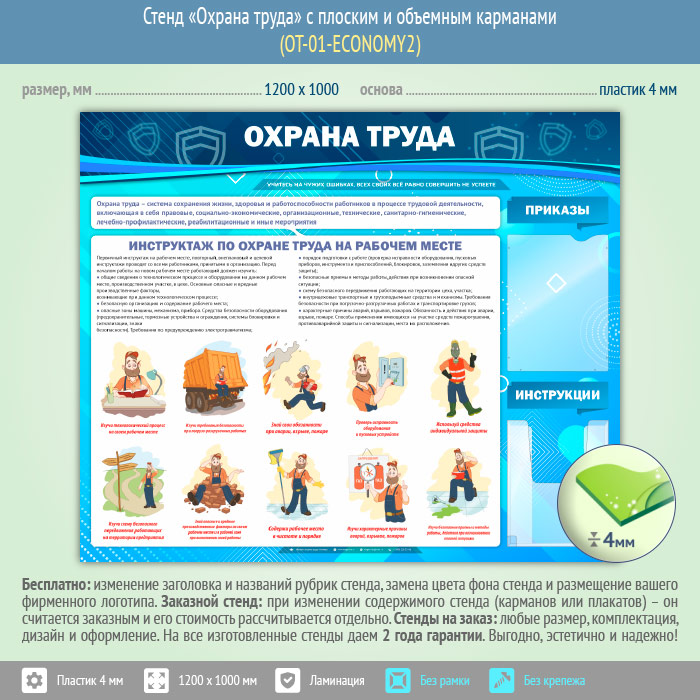 Стенд «Охрана труда» с плоским и объемным карманами (OT-01-ECONOMY2) в Старом Осколе купить