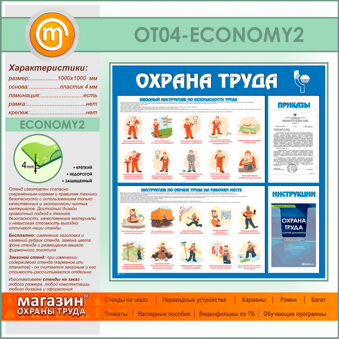 Стенд «Охрана труда» с плоским и объемным карманами (OT-04-ECONOMY2) в Старом Осколе купить