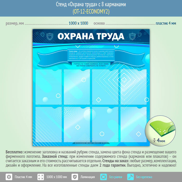 Стенд «Охрана труда» с 8 карманами (OT-12-ECONOMY2) в Старом Осколе купить