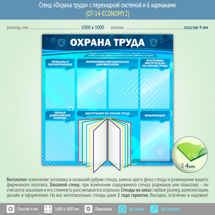 Стенд «Охрана труда» с перекидной системой и 6 карманами (OT-14-ECONOMY2) в Старом Осколе купить