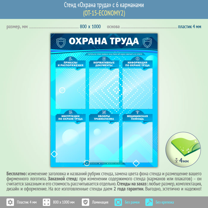 Стенд «Охрана труда» с 6 карманами (OT-15-ECONOMY2) в Старом Осколе купить