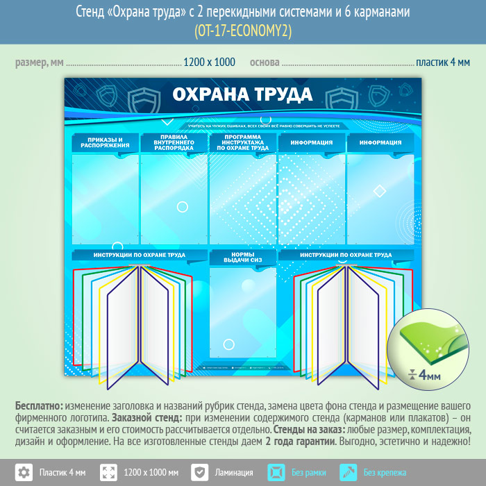 Стенд «Охрана труда» с 2 перекидными системами и 6 карманами (OT-17-ECONOMY2) в Старом Осколе купить