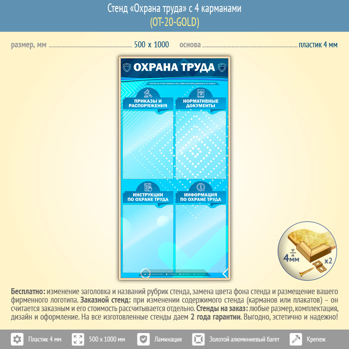 Стенд «Охрана труда» с 4 карманами (OT-20-GOLD) в Старом Осколе купить