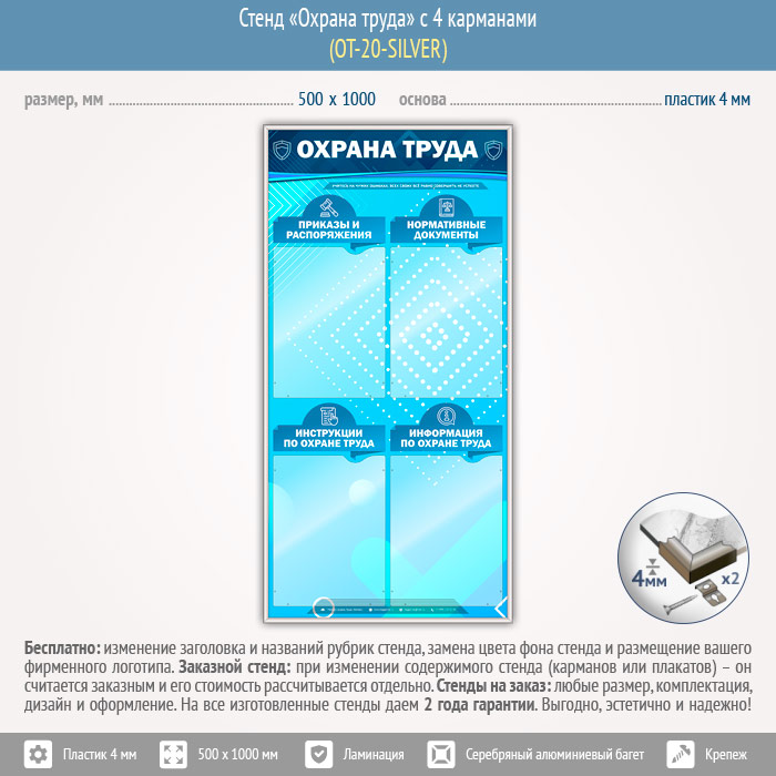 Стенд «Охрана труда» с 4 карманами (OT-20-SILVER) в Старом Осколе купить