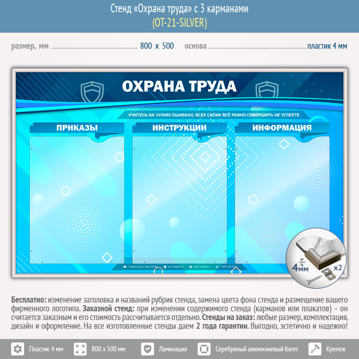 Стенд «Охрана труда» с 3 карманами (OT-21-SILVER) в Старом Осколе купить