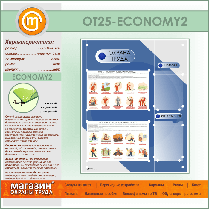 Стенд «Охрана труда» с 2 плоскими карманами (OT-25-ECONOMY2) в Старом Осколе купить