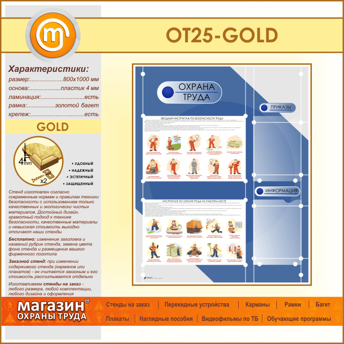 Стенд «Охрана труда» с 2 плоскими карманами (OT-25-GOLD) в Старом Осколе купить