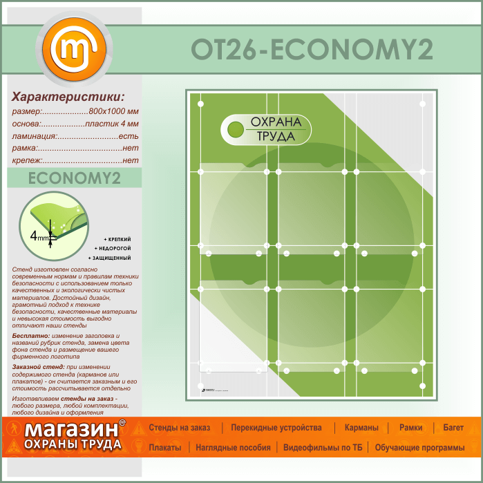 Стенд «Охрана труда» с 6 плоскими карманами (OT-26-ECONOMY2) в Старом Осколе купить