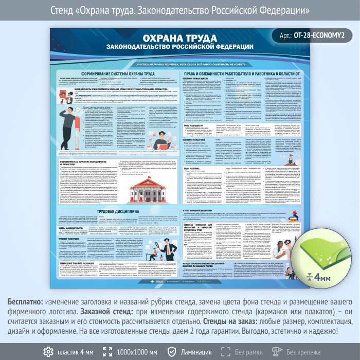 Стенд «Охрана труда. Законодательство Российской Федерации» (OT-28-ECONOMY2) в Старом Осколе купить