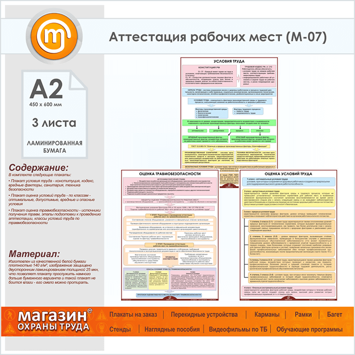 Плакаты «Аттестация рабочих мест» (М-07, ламинированная бумага, А2, 3 листа) в Старом Осколе купить