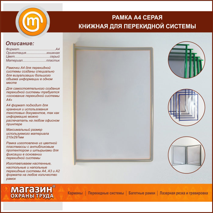 Рамка А4 серая книжная в Старом Осколе купить