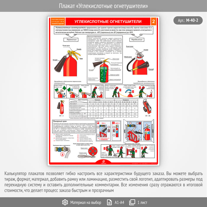 Плакат «Углекислотные огнетушители» (М-40/2, 1 лист)