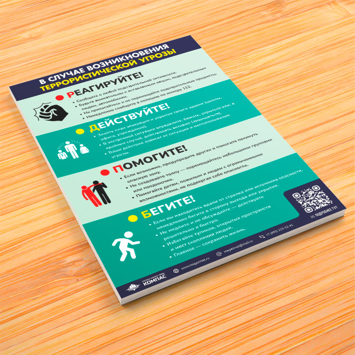 Плакат-памятка «В случае возникновения террористической угрозы» может быть изготовлен любого формата и размера, на бумаге, самоклеящейся пленке, пластике, баннерной ткани и металле. Разрабатываем, рисуем и изготавливаем плакаты на любую интересующую Вас тематику