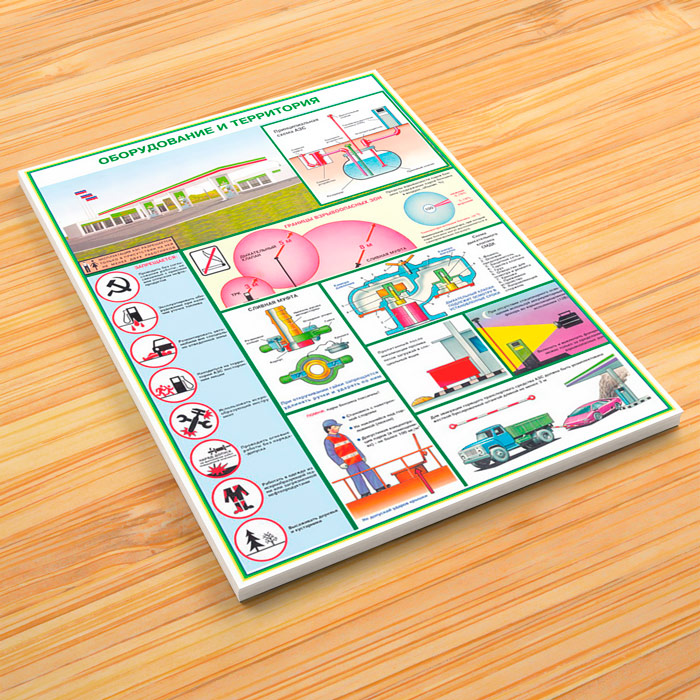 - Плакат «Оборудование и территория» – принципиальная схема АЗС, взрывоопасные зоны, правила поведения на АЗС