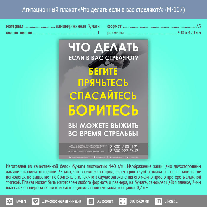 Плакат «Что делать если в вас стреляют?» (М-107, ламинированная бумага, А3, 1 лист) в Старом Осколе купить