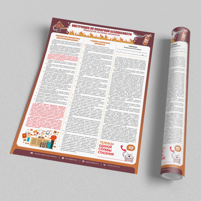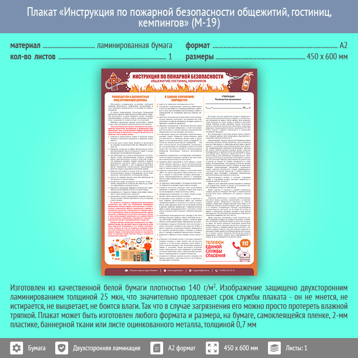 Плакат «Инструкция по пожарной безопасности общежитий, гостиниц, кемпингов» (М-19, ламинированная бумага, А2, 1 лист) в Старом Осколе купить