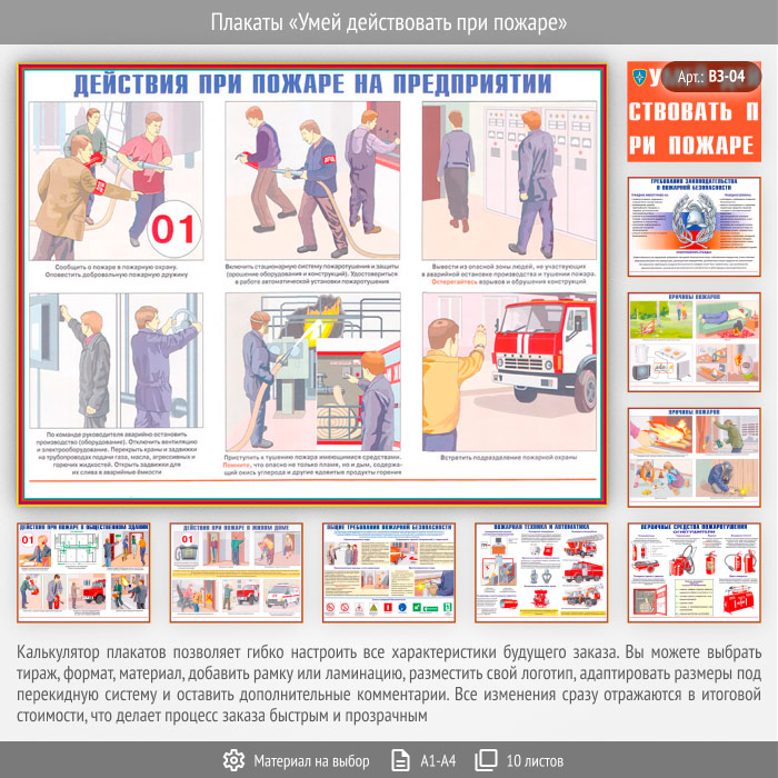 Плакаты «Умей действовать при пожаре» (ВЗ-04, 10 листов) в Старом Осколе купить